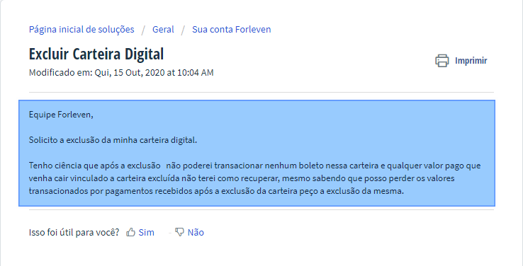 Caso queira proceder com o pedido da exclusão da sua carteira digital, siga as instruções abaixo: